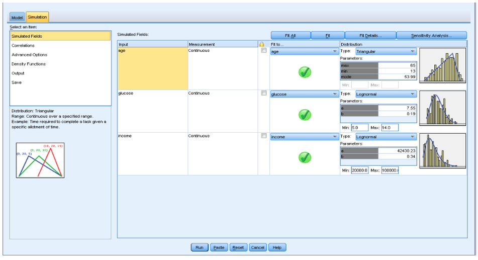 In the grid of Simulated Fields, pick the row for age, and then click Fit Details as .